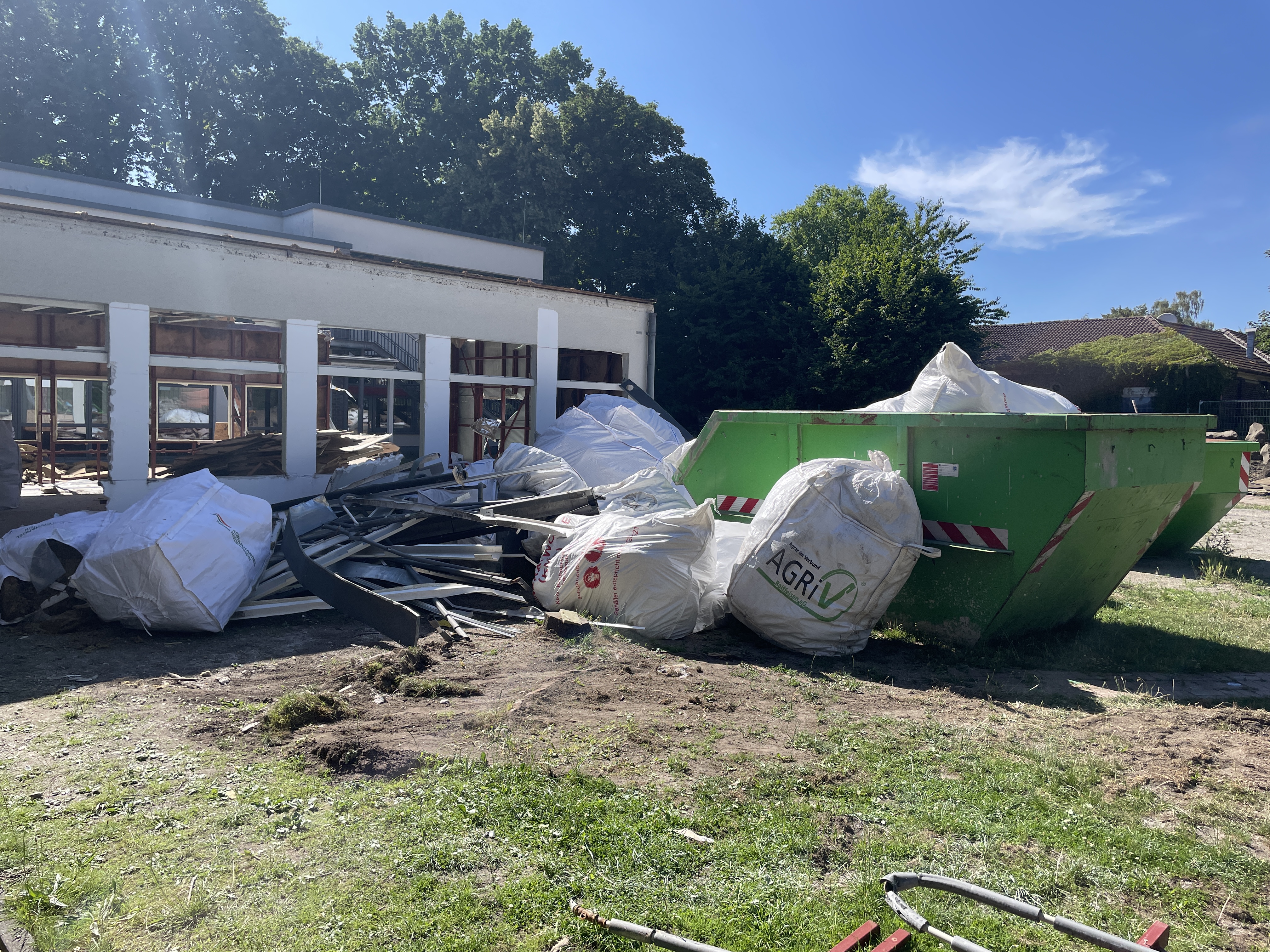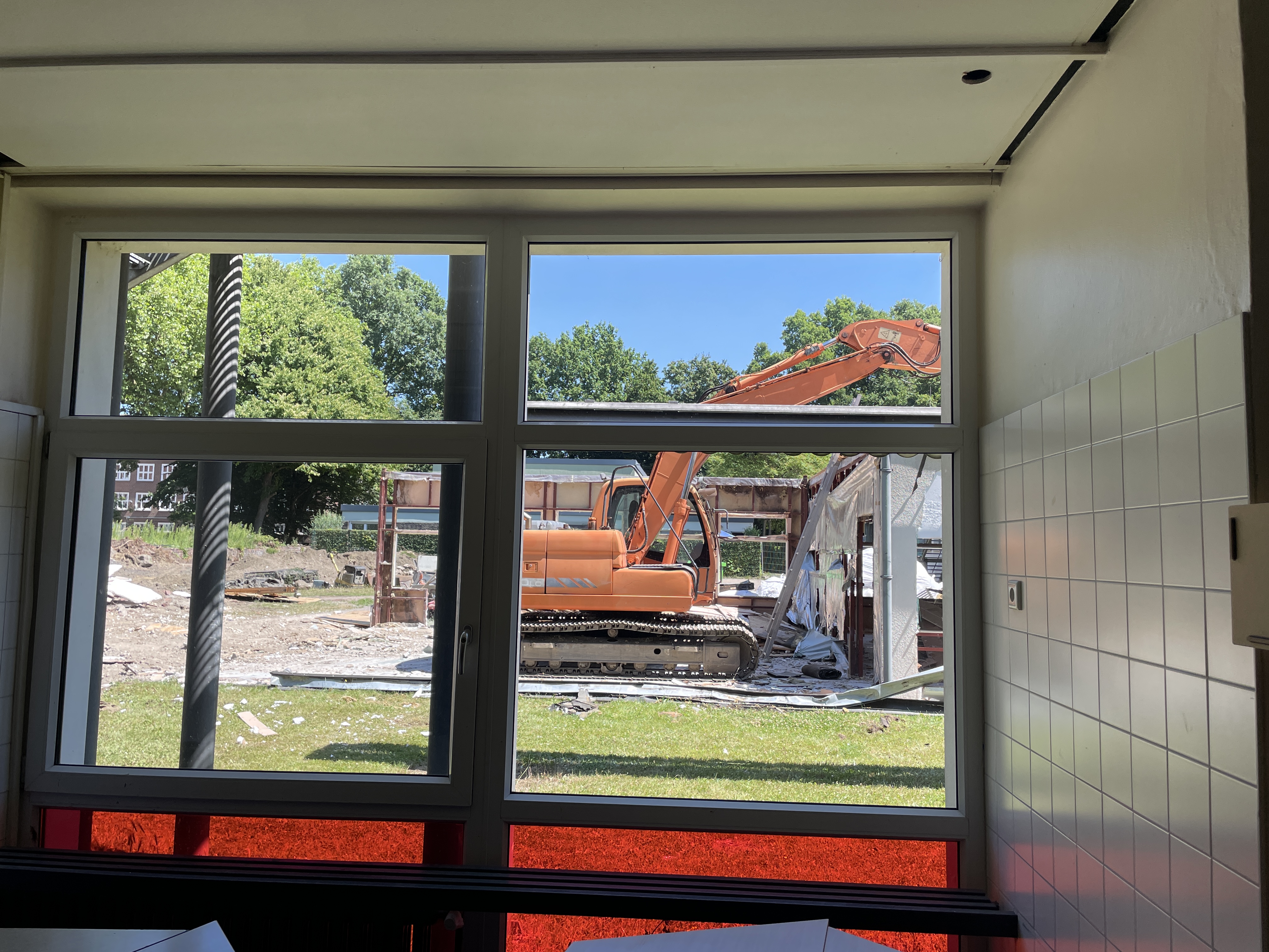 Noch vor den Sommerferien fand der offizielle Spatenstich für den Neubau statt. Die Räume 108 und 109 wurden inzwischen abgerissen, und das Gelände wird derzeit für den Bau des neuen Gebäudes vorbereitet.