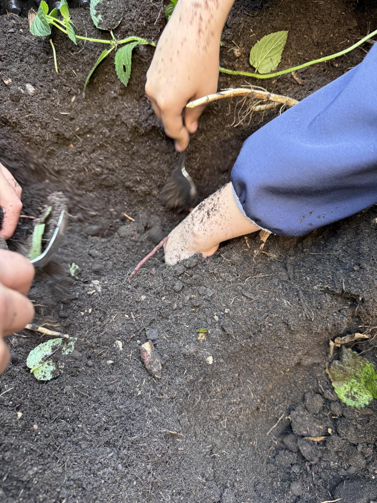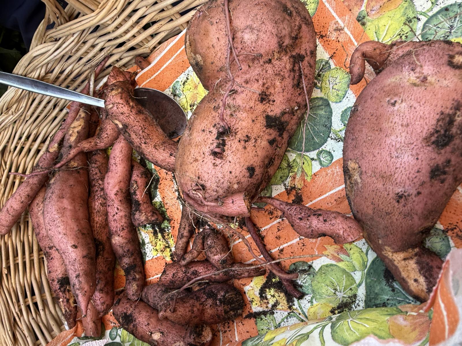 Nun, einige Monate später, war es endlich so weit: Die Süßkartoffeln waren reif und konnten gemeinsam geerntet werden. Anschließend wurden sie gegart und zusammen mit Joghurt und frischen Kräutern aus dem Beet genossen.