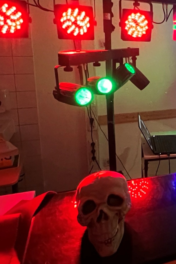 Zu Halloween verwandelte sich der Musikraum unserer Schule in eine echte Geisterhöhle! Die Schülervertretung (SV) hatte zur Halloweenfeier eingeladen – und viele Schülerinnen und Schüler folgten der Einladung in schaurig-kreativen Kostümen.