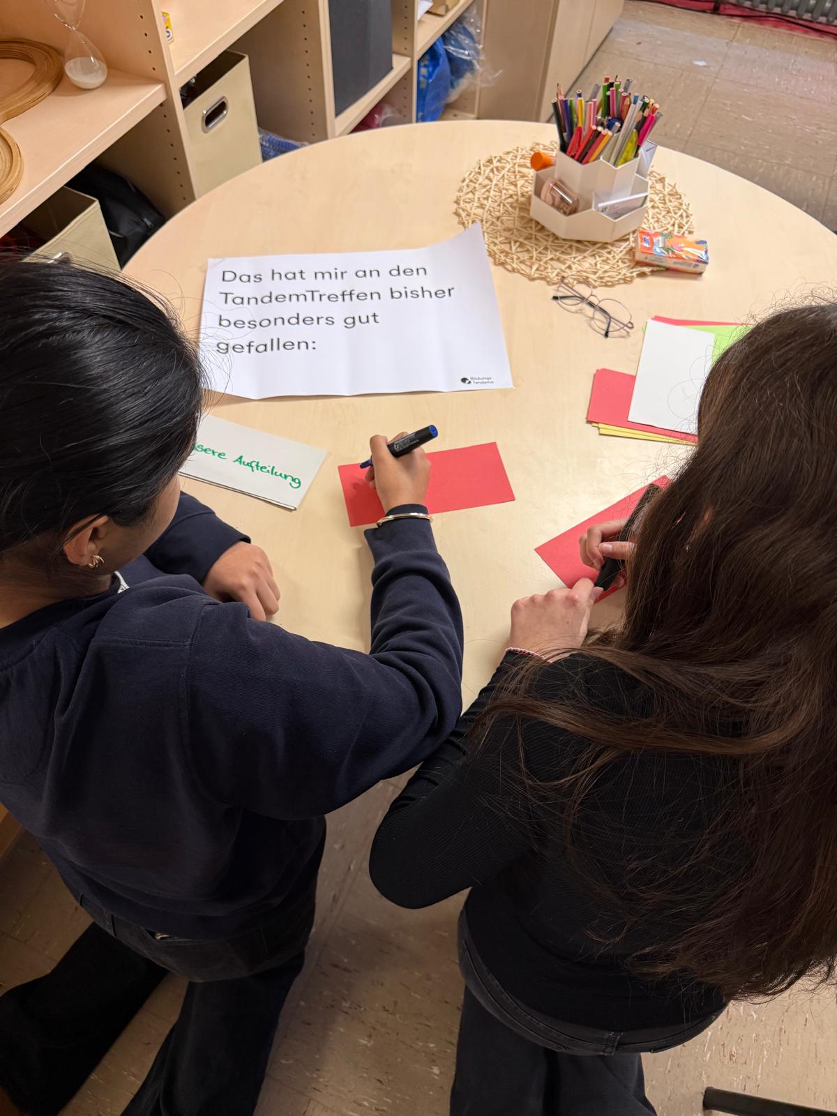 Auch in diesem Jahr werden an unserer Schule erneut Schülerinnen zu BildungsTandem-Paten ausgebildet. In regelmäßigen BildungsTandem-Treffen erwerben sie wichtige Kompetenzen im Umgang mit Grundschulkindern. Schülerinnen der Jahrgangsstufen 8 und 9 unserer Schule nehmen engagiert an diesem Programm teil.